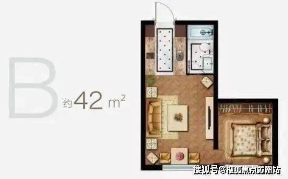 A户型:50㎡ (一房);B户型:42㎡ (一房);C户型:58㎡ (两房);D户型 56㎡(两房);E户型 38㎡(一房);F户型 39㎡(一房)