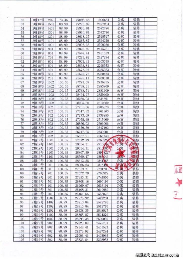 项目一房一价表
