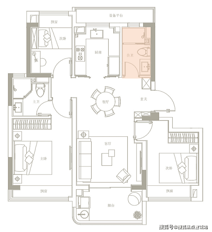 2个卫生间的户型设计在最开始说过了,非常难得!不仅是在虹桥核心区,即使是全市范围内能做到3房2厅2卫的小户型都非常罕见!