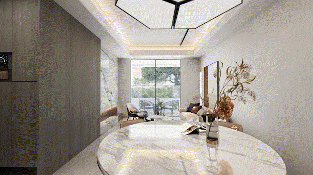 在玄关入户上,92㎡户型打造的是客餐厅一体化,客厅面宽约3.6米,目前市面上小户型客厅面宽普遍在3.2-3.3米,部分项目也能做到3.5米,但虹桥润璟在这方面远超全市小户型产品!