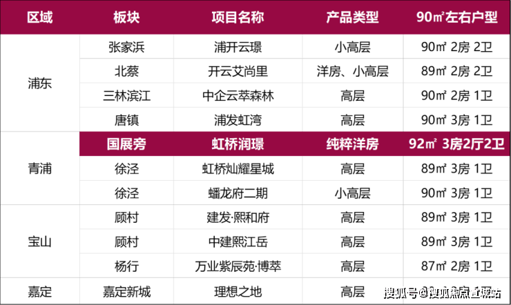 从统计中可以清晰地看到,只有浦东的两个项目做到了2房2卫,而且浦开云璟往期8.95万/㎡,开云艾尚里9.8万/㎡;
