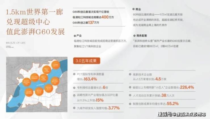 早在2021年3月,G60科创走廊就被正式纳入“十四五规划”重点。随着G60科创中心成为长三角一体化及一带一路的“交汇策源点”,产业空间超过约250万方,约120万方临港松江科技城,目前完成招商运营近百万方,聚集松江约1/7高科技企业;约130万方G60之眼,已建成约20万方。汇聚腾讯超算中心、海尔智谷、上海超硅等,导入40万+科创精睿,势能强劲。而洞泾版块作为G60龙首之地——承接市中心功能外溢的科创封面,目前已实现千亿营收,完成从科创中心到超级中心的跃升,未来规划红利进入集中兑现期!