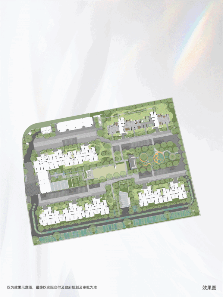 向城市让渡一些开放空间,以前街后河、约12000m滨水公园(代建)等一体化柔性边界,打造「外揽城市绿肺,内藏森境天地」公园住区,让繁华都市与静谧生活自然过渡。