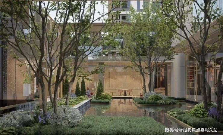 于是你可以看到,结合建筑界面打造城市精品酒店式的入口广场,即精品街区,以及流觞曲水的觅隐叠溪,将你从城市拉回自然。