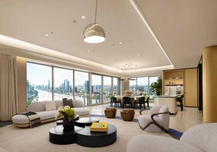 -270°环幕瞰江大平层:巨幅玻璃幕墙如通透画框,将日夜流转的浦江盛景尽收眼底,室内外交融,气象万千。