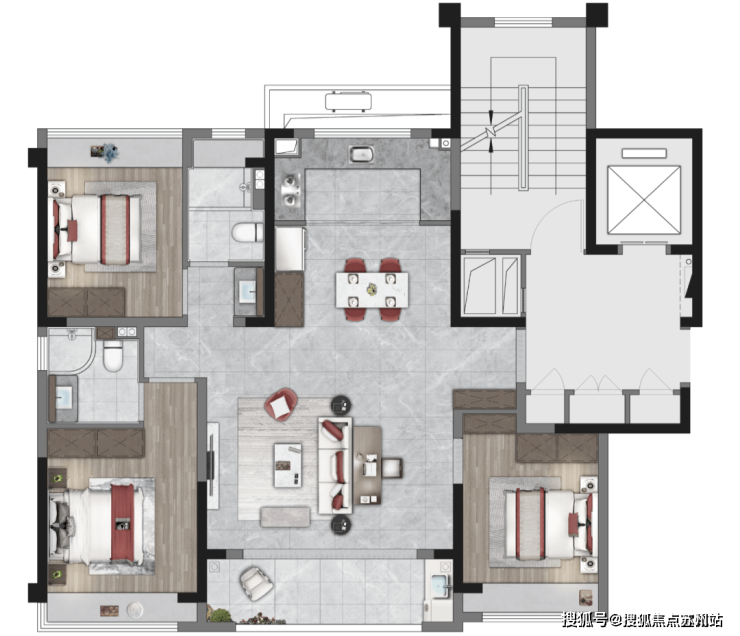 精装交付,包含全屋中央空调、地暖、新风三大件交付,尊享品质生活。