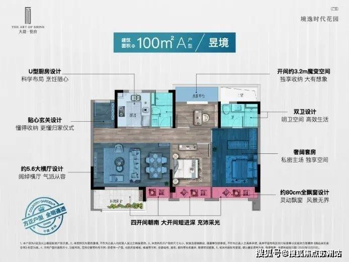 【王牌户型】:主力户型 100 平,大三房大两卫大横厅设计