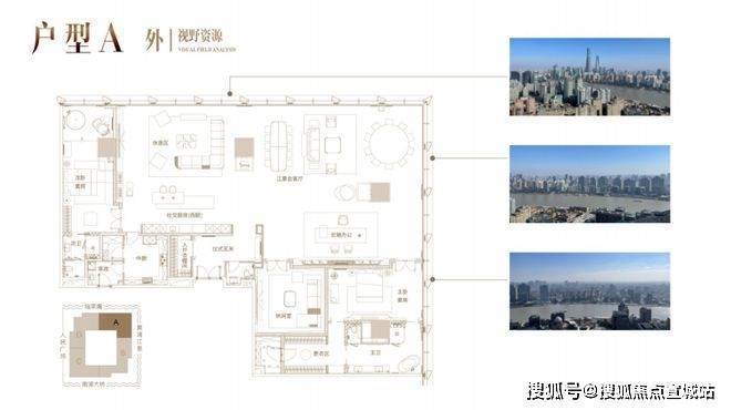 户型特点:户型方正,270° 面南向大宽厅,南北通透,采光和视野极佳。
