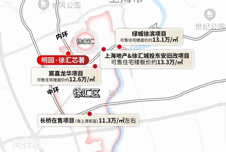 明园·徐汇芯著东侧的尚汇豪庭挂牌均价约17.1万/㎡;其他内中环的次新房挂牌均价普遍在15万+/㎡;西侧大古北的次新房,挂牌均价也达到14万+/㎡。