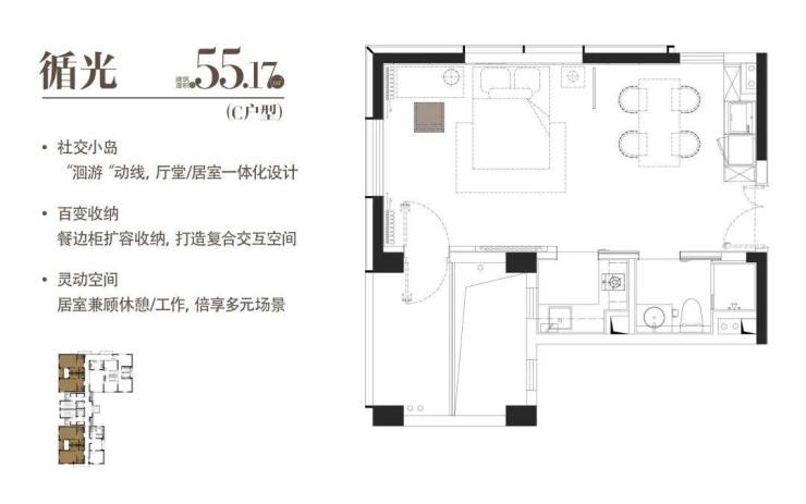 此次明园徐汇小安桥项目「明园·徐汇芯著」焕新产品,将推出建面约55-120㎡雅致1室-2室,小面积、低总价,可以满足全龄段的置业需求。