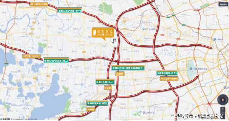 翠湖水岸项目位于青浦虹桥西,距离虹桥核芯区直线距离约17公里(百度地图测距),妥妥的背靠大虹桥,坐拥大虹桥板块发展红利,其地理位置上也具备天然优势,自驾出行,通过沪常高速转沈海高速,全程4个红绿灯直达上海虹桥站。