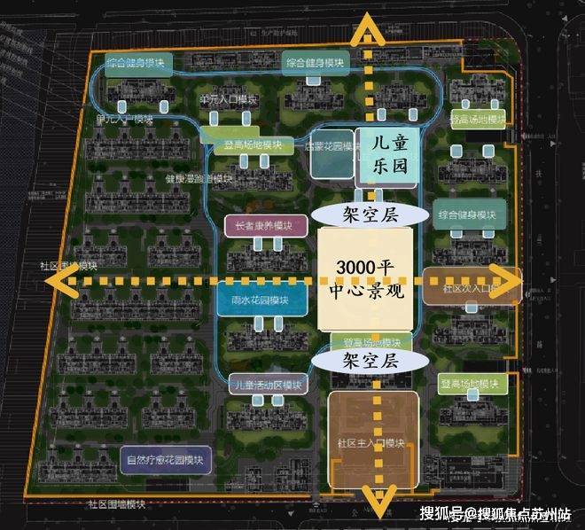 点、线、面串联成片,中央绿地+景观长廊+架空层泛会所,成就了社区约7000平中轴景观!
