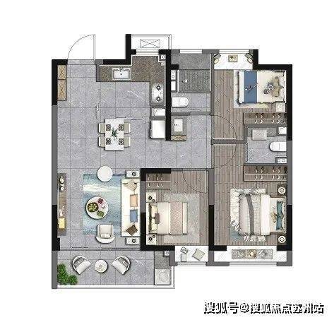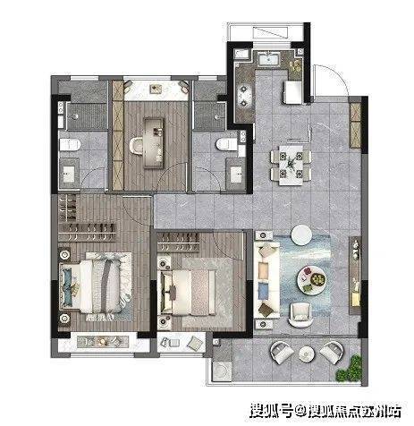 3开间朝南,四飘窗设计,套房式主卧,特别是大阳台设计,让居住体验感再度提升。