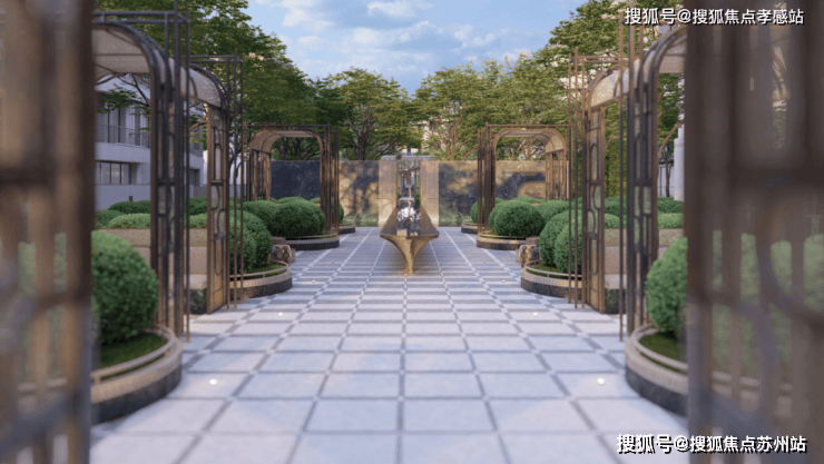 整体由一条晚樱主题花街轴将南北花园进行串联,南北划分形成四大海派经典厚重花园及16个自然都会生活场景,采用欧式古典主义风格空间布局,结合欧式经典符号和艺术性,融入精致的卡座空间、优雅的软装布置、艺术水台结合主题雕塑、修剪整型的灌木球等景观细节,为客户提供一个都市浪漫的度假生活场景。