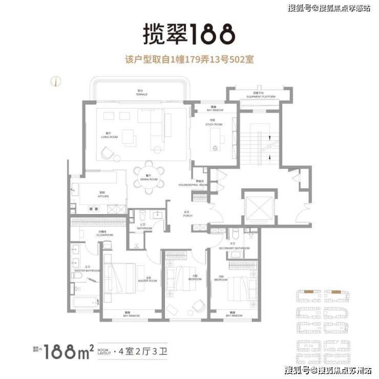 152㎡四房:主卧套房+270°观景阳台,层高3.3米