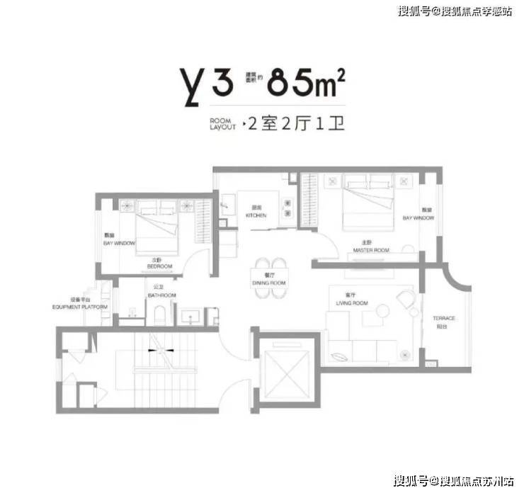第二、近乎0浪费空间! 典型的飞机户型,消灭过道减少面积浪费,尺度感足以和市面上100㎡户型媲美。