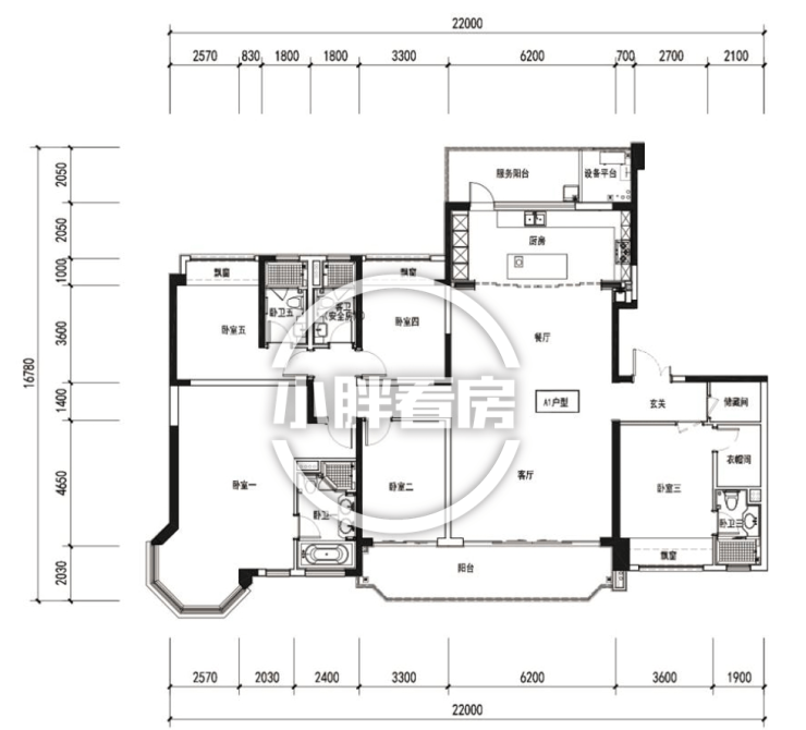 4房3卫的房屋套型,6米大宽厅;