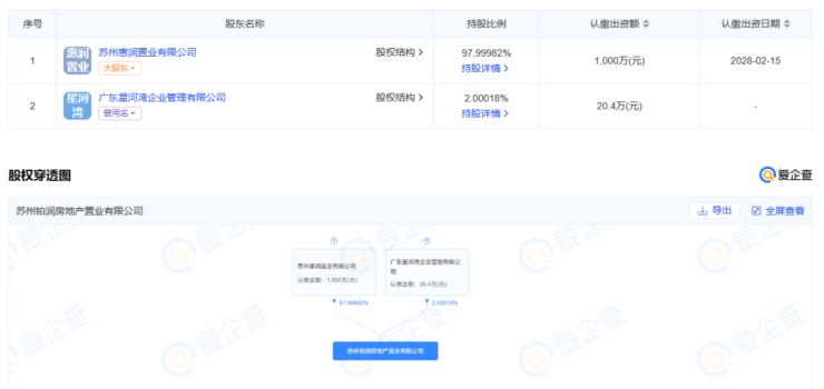 项目的建设单位为苏州铂润房地产置业有限公司,则是,惠润置业和星河湾联合开发。