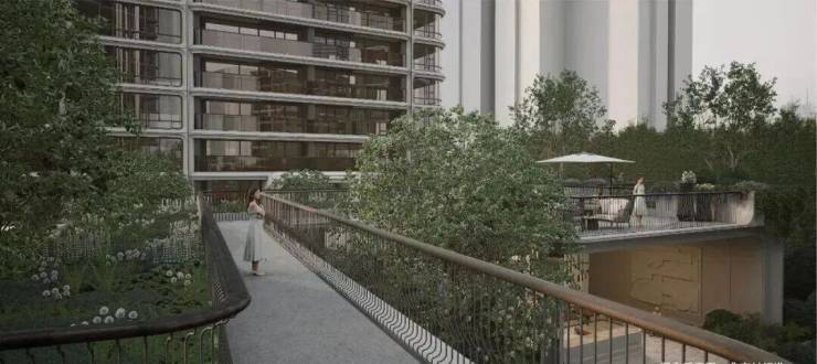 二层空中廊道与北外滩城市连廊无缝衔接,让业主无需穿越地面车流,即可直达商业地标、滨江步道;