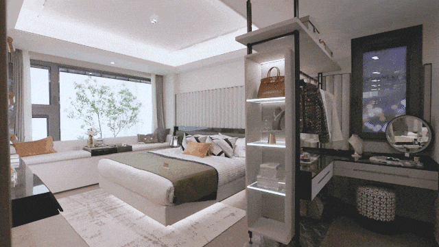 套房式主卧带有衣帽间及独立卫浴,打造了更丰富、更灵动、更轻奢的酒店式空间体验,为生活的精致体验感充分考虑。