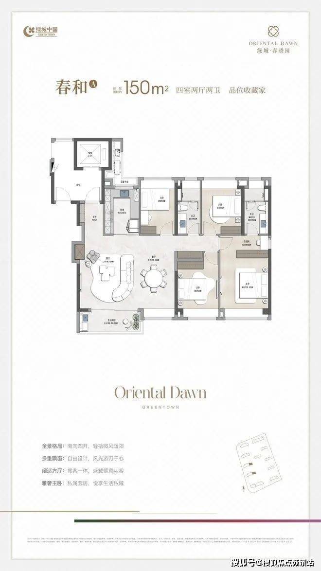 四开间朝南,通过对空间尺度、功能的完善性、生活的舒适性的进阶改善,带来更优的居住感受。