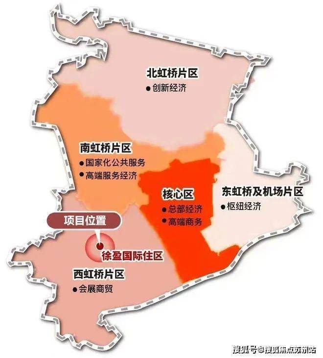 项目位于西虹桥片区徐盈国际住区板块。《虹桥国际开放枢纽中央商务区“十四五”规划》提出:虹桥商务区2025年要基本建成虹桥国际开放枢纽核心承载区,不再以主城区、拓展区划分,而是以“一核四片”为总体格局。