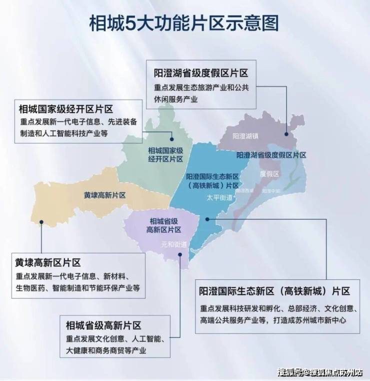 借势长三角国策东风,相城区大力推进虹桥-相城一体化发展,牢牢占据时代“C位”。当前,相城正高起点谋划未来,牢牢把握“苏州市域新中心”发展定位,推动相城打造生态宜居中心、科技创新中心、城市枢纽中心、未来活力中心。实施“五大功能片区”战略规划,强化阳澄国际生态新区(高铁新城)片区核心功能。