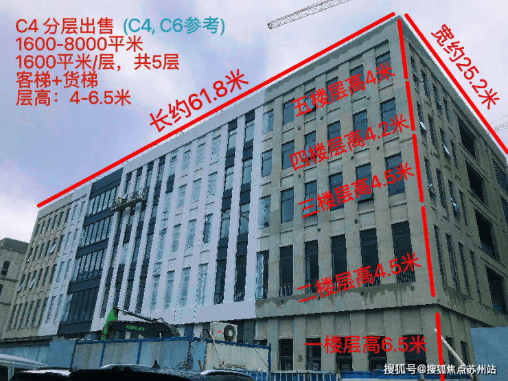 C10-11/12-13-双拼独栋-4层半,单栋面积约2870㎡,单层面积约600㎡,层高分别为6.9/4.5/4.5/3.9/3.9米。