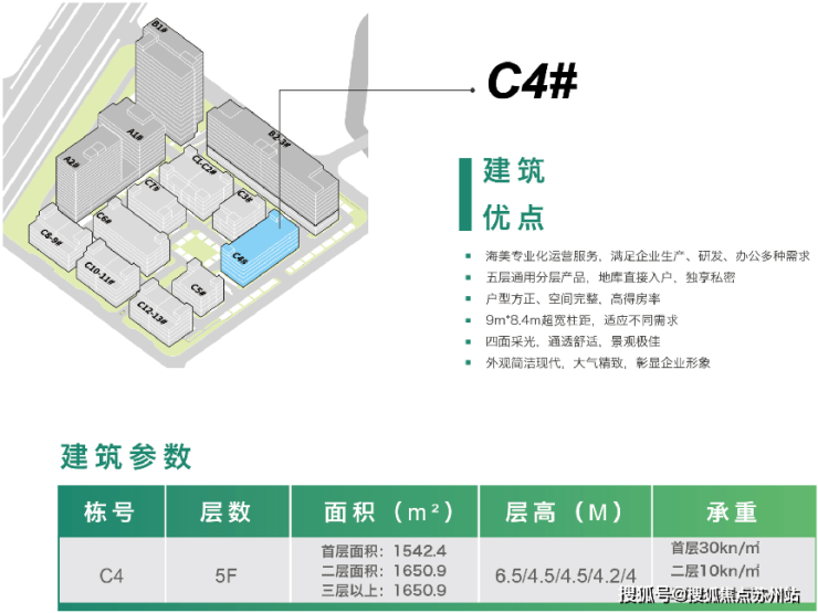消防等级是丙二类,配电是70KVA/1000㎡,层高方面,首层6.9-8.0米,二层4.5-5.4米,三层及以上4.0-4.5米。承重方面,一楼3吨/m²,二楼1吨/m²,三楼及以上0.4-0.8吨/m²。付款方式很灵活,首付2成起,可贷20年。还有补贴政策,昆山"头雁人才"、双创人才,重点产业紧缺人才、市场化引才激励等,涵盖项目资助、购房补贴、个人/团队奖励等等,部分政策还能叠加享受。