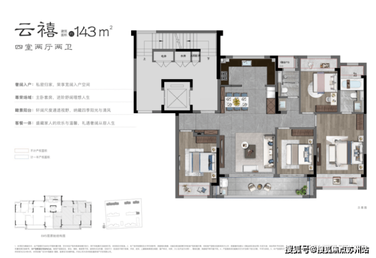 6#-10F, 01户,143㎡户型(四房两厅两卫);02. 03. 04户,159㎡户型(四房两厅三卫);