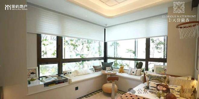 户型三开间朝南,象屿天誉蘭香售楼处电话☎:400-8228-664【预约☎】客厅面宽约4.5米,边套主卧和北卧均为270°转角飘窗。