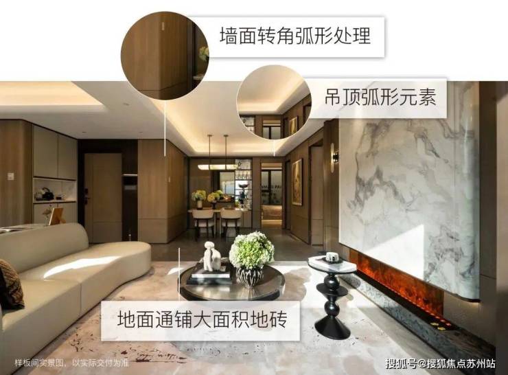 创新墙体弧角处理工艺,提升安全性能并空间优雅的艺术张力;全屋大尺度地砖通铺,创造出浑然天成的开阔空间感……这些看似不经意的细节,实则是金茂经过数百次推敲的臻萃之作!