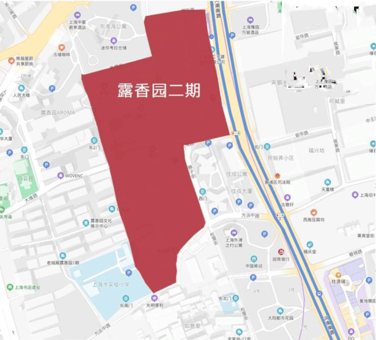 露香园二期地块,位于黄浦区老城厢核心地段,北至高墩街-福佑路,南至方浜中路-昼锦路,东至河南南路-狮子街,西至露香园路,与露香园一期紧密接壤.东临豫园和外滩,地理位置优越,临近10号线豫园站.
