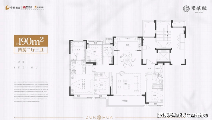 建面约190㎡4房2厅3卫: