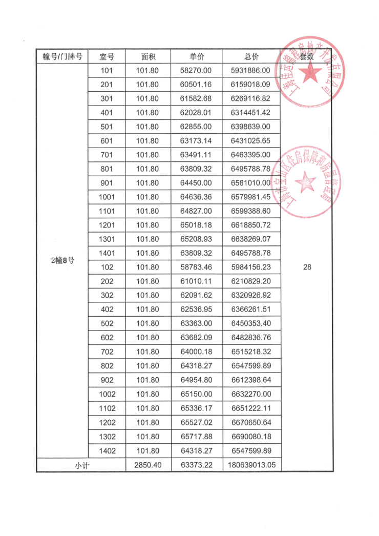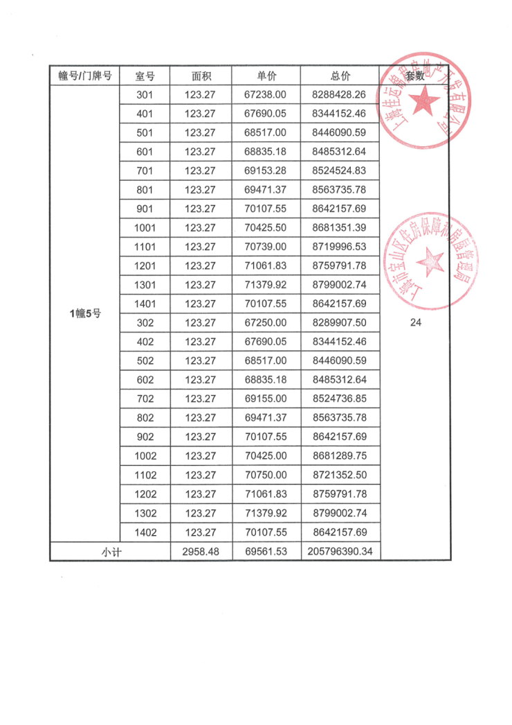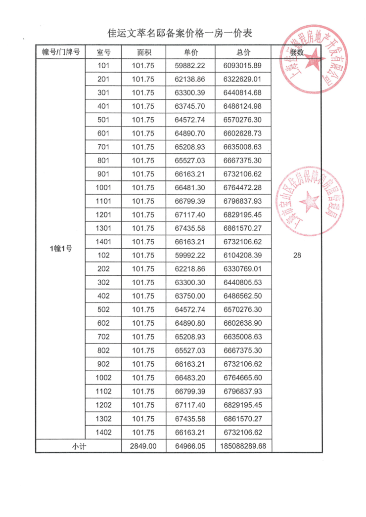 一房一价表