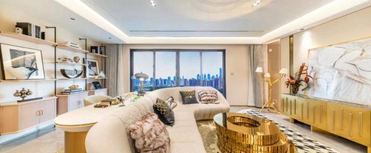 人性化细节也相当出彩。比如,客厅和主卧都 标配悬浮吊顶、无主灯设计,背景墙采用皮革和铝合金拼接,也都是实体交付的。