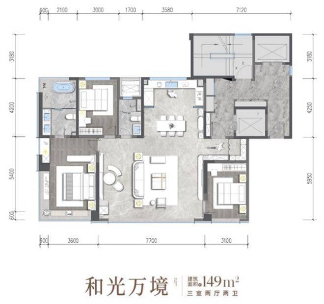 建面约149㎡户型,精准击中中端改善家庭的“舒适刚需”,它不追求238㎡、198㎡的极致奢阔,但对空间尺度与居住品质极致把控,让“改善生活”变得触手可及。