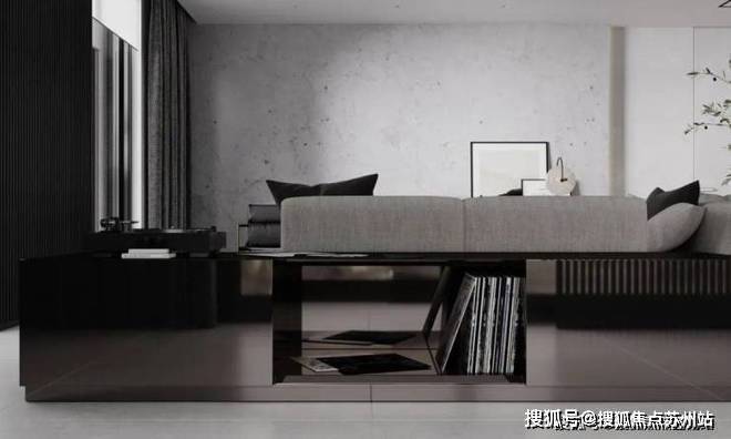 The living room enhances the overall high-level sense with black and gray color matching. French windows not only accommodate the outdoor beauty in the space, but also enhance the openness of the living room and the saturation of light.