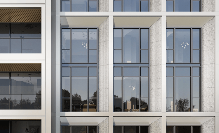 立面美学:银白色铝板+陶板组合,垂直格栅与悬挑结构设计,打造光影交错的现代艺术立面,材质标准远超同类豪宅。