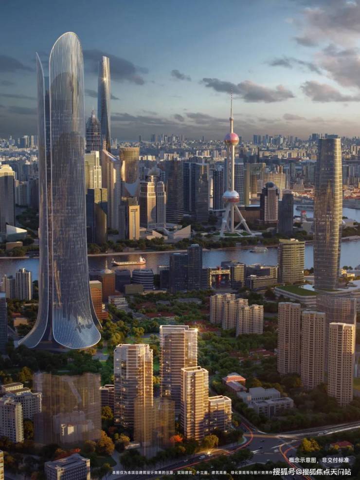 尊踞上海北外滩之心,与陆家嘴天际线从容对望.项目直线距离黄浦江岸仅约900余米(来源百度地图),坐揽北外滩中央公园生态绿肺(规划)及百年外滩人文画卷,是外滩新百年时代无可争议的封面作品.