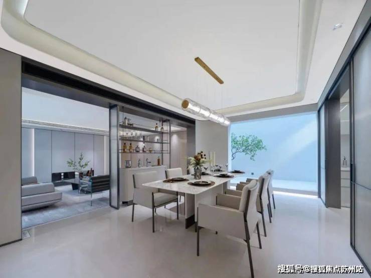 当然,生活不只有「面子」,更需要「里子」。除了有高还原度的法式建筑,菲郦雅院室内空间,也结合当代改善大家庭生活,进行了精细考量:前庭后院,地上三层。一楼是家庭公共空间,独立玄关、餐客厅厨房一体,也可以容纳一般大平层才有的中岛台,让生活更有仪式感;