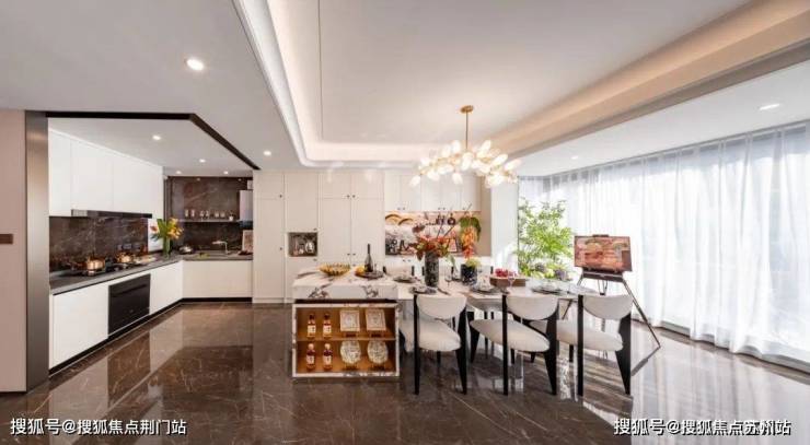 玄关层即公区层,约6.9米面宽的餐客厅+茶歇区+环U厨房,办个私家派对不在话下.往下走是卧室层,有长者套房和二孩双卧.