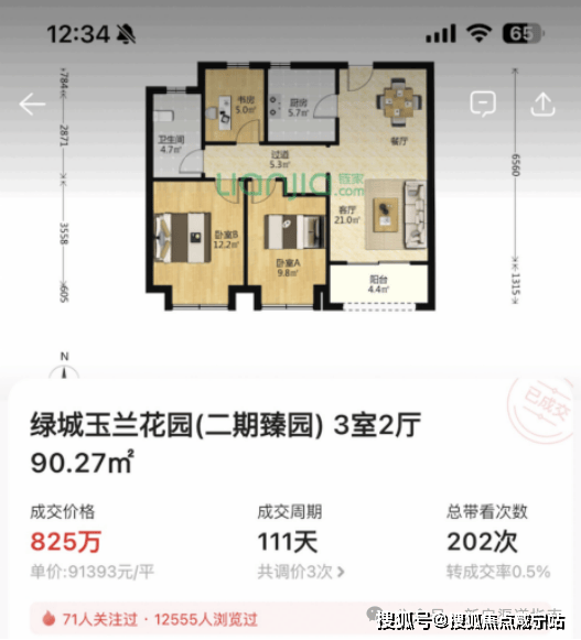 6.二手市场价格可期,旁边绿城二期今年成交一套90m²小户型,单价9.1万,比保利天奕前期小户型最贵单价还贵出近1万/m²!