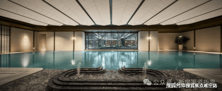 恒温泳池:第一,采用了景德镇烧制的陶瓷马赛克,独特的釉面色彩由景德镇老师傅手工浇筑而成,充满人文艺术底蕴;第二,羽毛天花造型,由600余件铝板打造,表面采用了仿贝壳纹的艺术漆处理,带来松弛度假感;第三,不仅配置了约25m×10m的4道泳池,还采用了奥运会同款空调除湿系统,彰显高档品质细节!