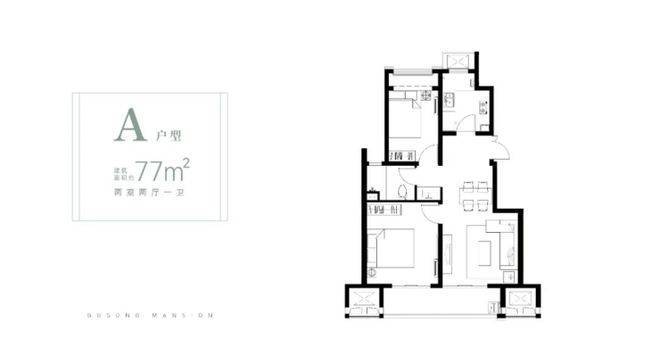 77㎡A户型:2室2厅1卫,南向采光,总价180-190万