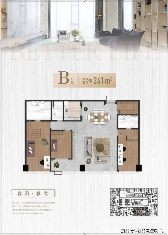 在户型设计上,推出了241平的玺悦、雅致和486平的世家、世族四种户型,对应不用空间喜好和需求的用户。