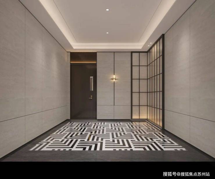 海上映象首层入户大堂,区别于传统入户大堂的阴暗潮湿,打造明亮通透、视野敞阔的入户空间。精装奢阔的首层入户大堂,科学温暖的灯光设计,让归家更有氛围感,挺括的建材选用,植入当代的建筑语境,强化空间的韵律感,营造符合高阶美学理念的视觉享受。这里地铺图案有机整合了斯卡帕与石库门元素、映象系专属的黑白画作、定制款照明灯具、高定符号门把手等,同时,电梯门一体化设计,进一步提升空间整体感。