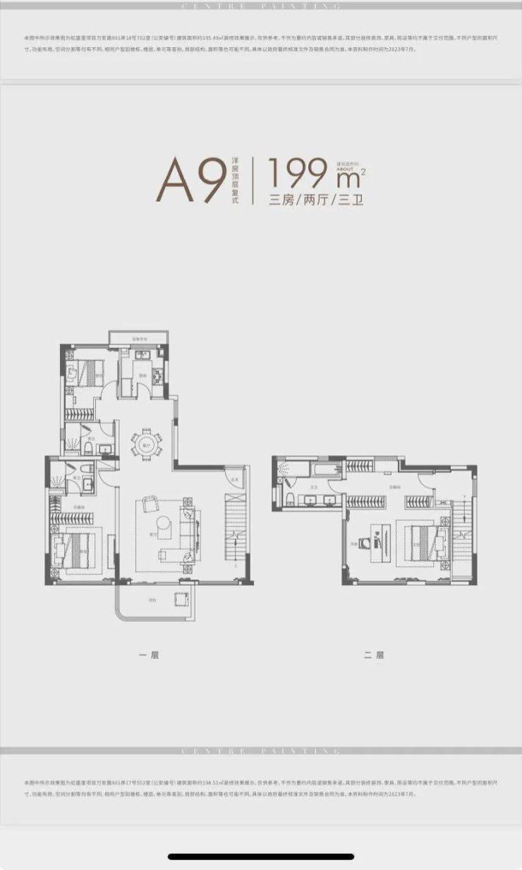 ①、建面约120㎡3房: