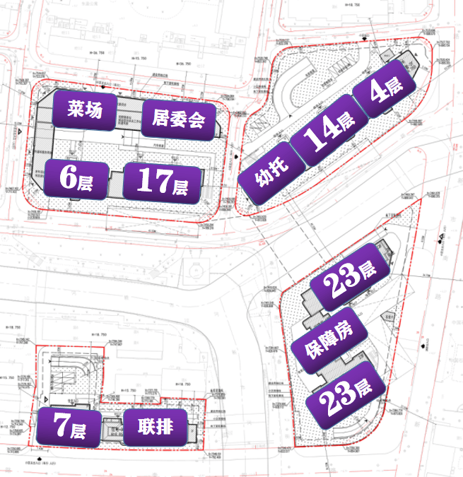 规划有14-23层高层住宅,有4-7层的洋房,也有3层的别墅产品,别墅靠近奎照路。还有一些配套,比如市民驿站、菜场、幼托、老年人活动室等(以实际为准)。