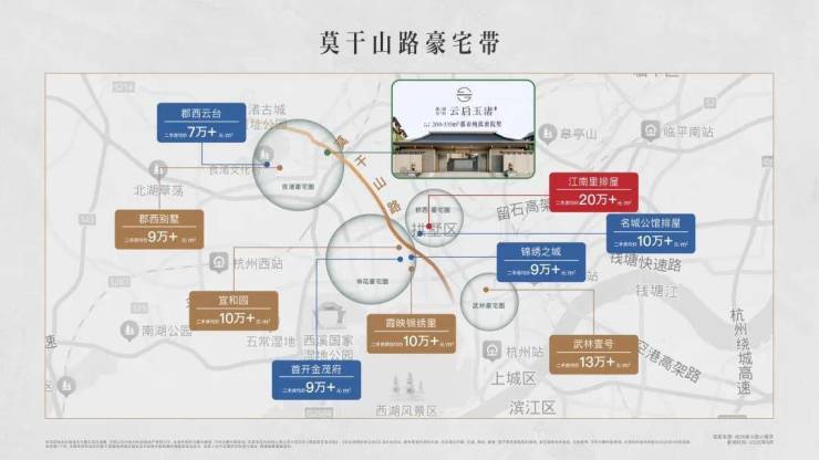 云启玉渚坐落于“莫干山路”这条贯穿杭州南北的千年中轴之上,莫干山路串联起了良渚、申花、武林等商圈,使项目既享主城繁华便利,又接壤良渚文化村的自然与文化静谧。